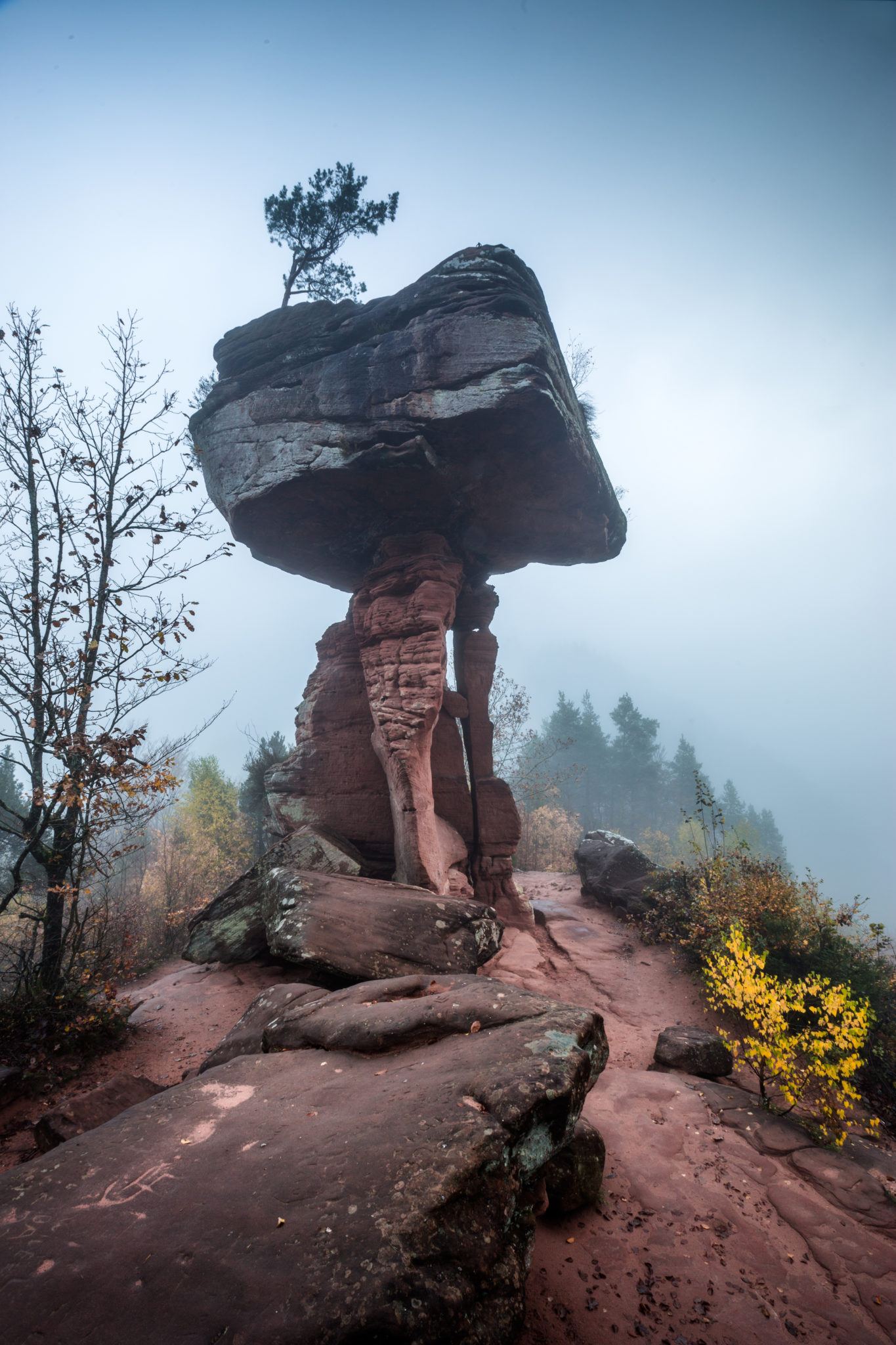 Ich schoss eine Reihe von Bildern und versuchte den Nebel und die düstere kalte Stimmung einzufangen. Der Teufelstisch ist wahrlich faszinierend. Dass er stehen kann und unter der Last nicht zusammenbricht, erscheint verwunderlich.